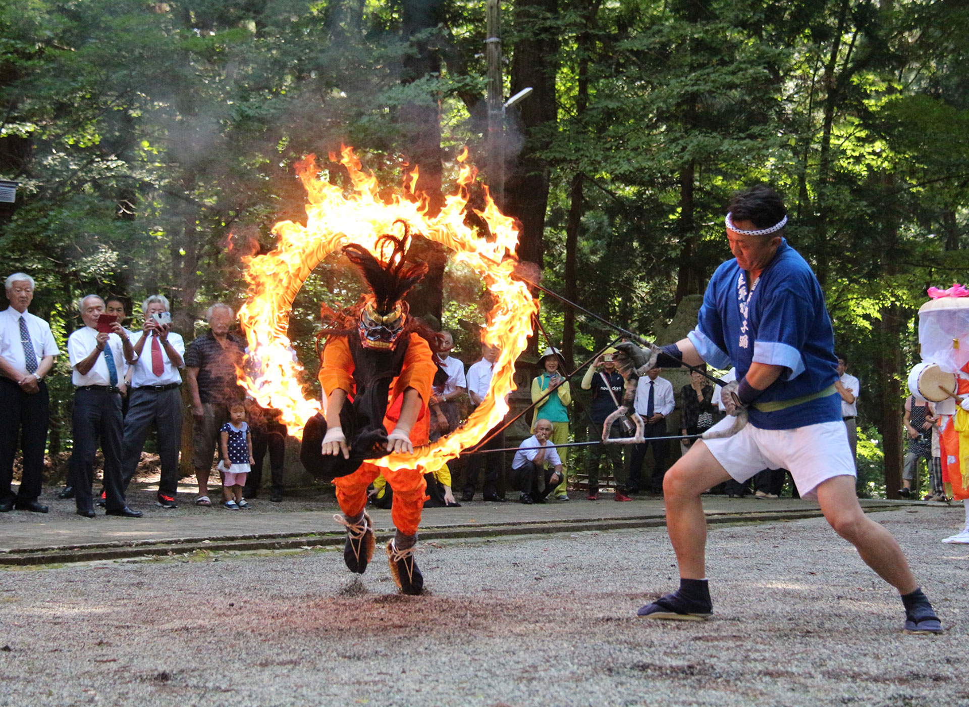 本物の火をくぐる圧巻の舞